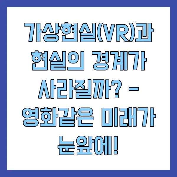 VR 기술은 현실과 가상 세계의 경계를 희미하게 만들고 있으며, 미래에는 두 세계의 구분이 더욱 어려워질 것으로 예상됩니다. VR은 단순한 기술을 넘어 우리의 삶, 교육, 산업, 문화 전반을 변화시킬 강력한 도구입니다. 기술 발전과 함께 윤리적, 사회적 문제에 대한 지속적인 고민과 대비를 통해 VR 기술이 인류에게 긍정적인 영향을 미칠 수 있도록 노력해야 할 것입니다.