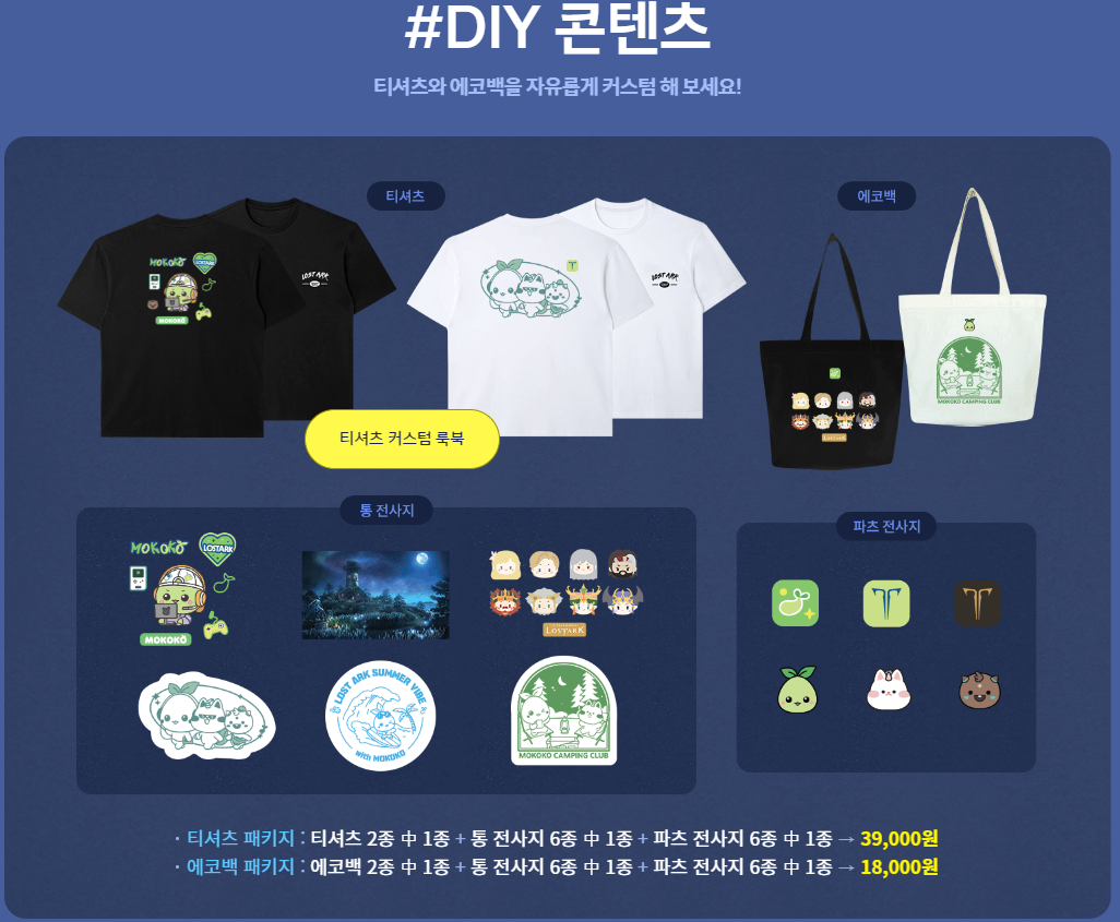 티셔츠 또는 에코백 구매 후 DIY 존으로 이동