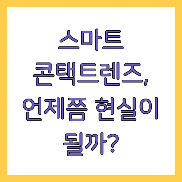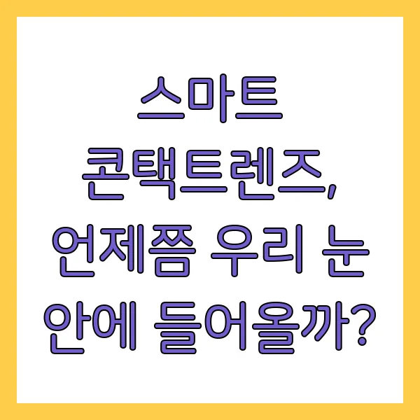 영화 속에서만 보던 스마트 콘택트렌즈, 이제는 꿈이 아닌 현실로 다가오고 있습니다. 단순히 시력 교정을 넘어 건강 관리, 정보 제공, 엔터테인먼트까지, 우리의 삶을 혁신적으로 바꿀 잠재력을 가진 스마트 콘택트렌즈. 과연 언제쯤 우리 눈 안에 들어와 세상을 바꿀까요? 지금부터 스마트 콘택트렌즈의 현재와 미래를 함께 살펴보겠습니다.