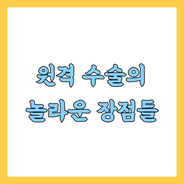 원격 수술은 단순히 거리의 제약을 극복하는 것을 넘어, 다양한 의료적 혜택을 제공합니다.