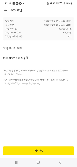 이런 상황을 대비하기 위해 카카오톡에서 대화 백업 서비스를 제공하고 있습니다.