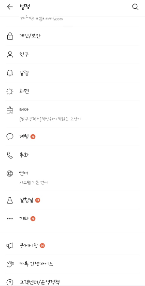 1. 더보기 선택 후 설정으로 들어갑니다.