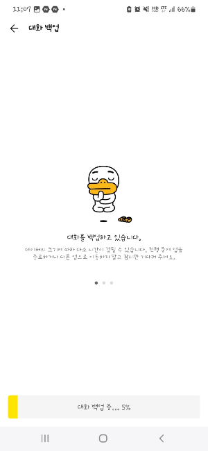 5. 대화 내용 백업 중...이라고 나오며 백업을 진행합니다.