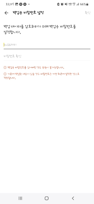 4. 백업용 비밀번호를 설정 후 백업을 눌러줍니다.