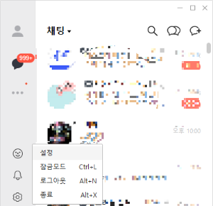 1. PC 카톡 좌측 하단 톱니바퀴 아이콘을 클릭 한 뒤 설정을 클릭합니다.
