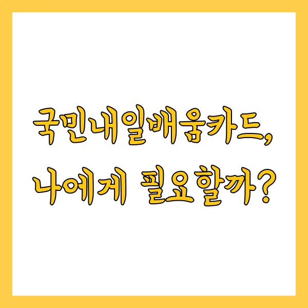 국민내일배움카드는 대한민국 국민의 직업능력개발과 경쟁력 향상을 위한 든든한 지원 시스템입니다! 급변하는 고용 시장에서 살아남기 위한 필수 자격증 취득부터 미래 유망 직종까지, 여러분의 커리어 개발을 위한 모든 것을 지원해 드립니다. 지금 바로 국민내일배움카드의 신청 자격, 지원 금액, 활용 방법, 그리고 숨겨진 꿀팁까지 모두 확인하세요! 혹시 지원 대상에서 제외될까 봐 걱정되시나요? 걱정 마세요! 다양한 지원 제도를 통해 누구나 혜택을 누릴 수 있도록 설계되었습니다.