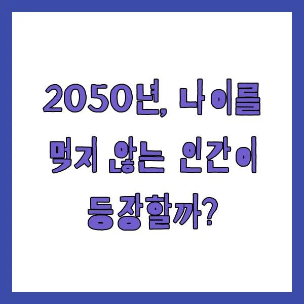 2050년, 우리는 과연 나이를 먹지 않는 인간을 볼 수 있을까요? 영화 속에서나 볼 법한 불로불사의 꿈은 인류의 오랜 염원이었습니다. 최근 의학과 생명공학의 눈부신 발전으로 평균 수명이 꾸준히 늘어나면서, 영원한 젊음에 대한 기대감 또한 커지고 있습니다. 하지만 과연 2050년, 우리는 정말로 노화를 멈추고 영원히 젊음을 유지할 수 있을까요? 이 글에서는 현재까지의 연구 성과와 미래 전망을 바탕으로, '나이를 먹지 않는 인간'의 가능성에 대해 심층적으로 분석해보겠습니다.